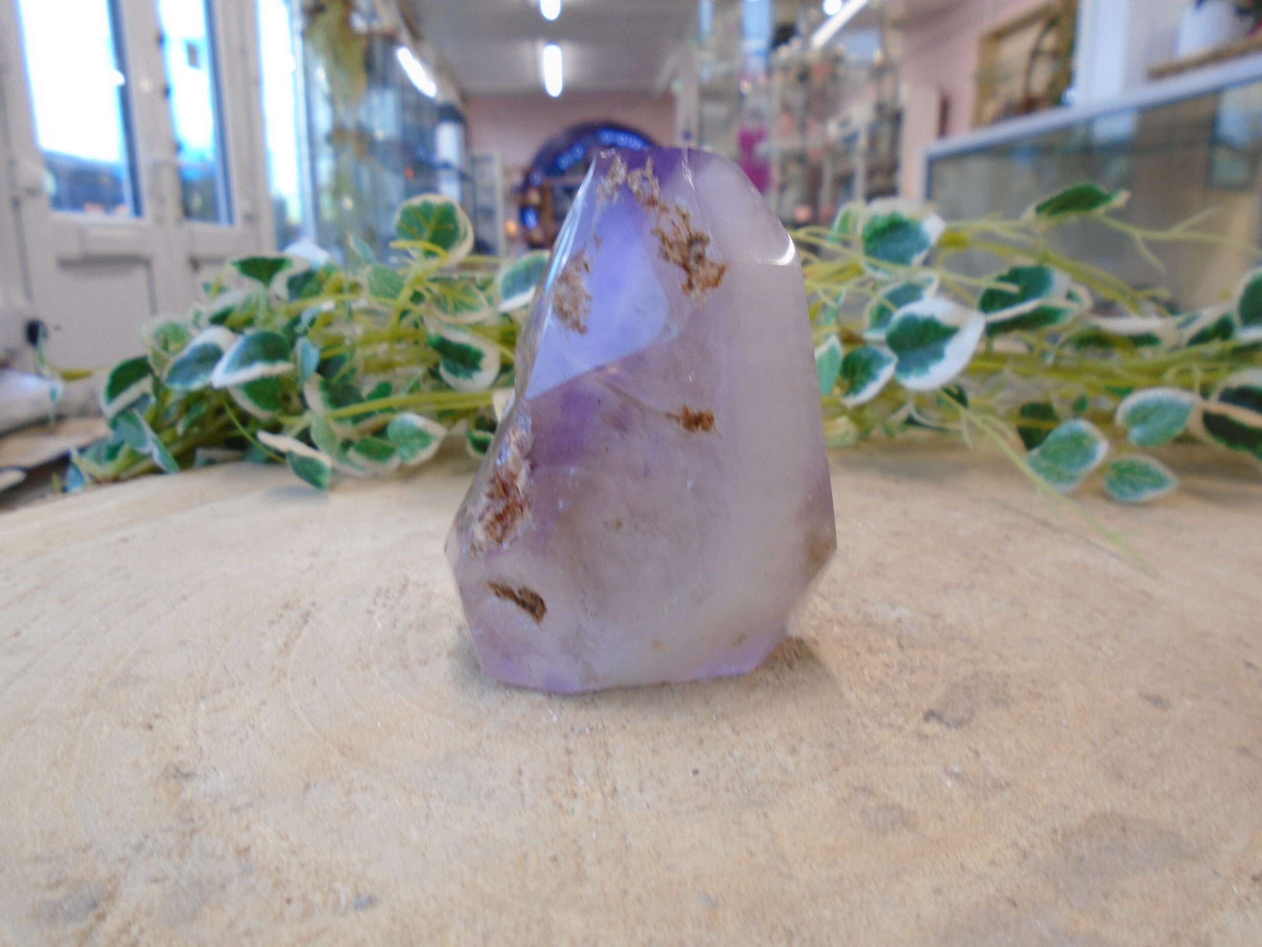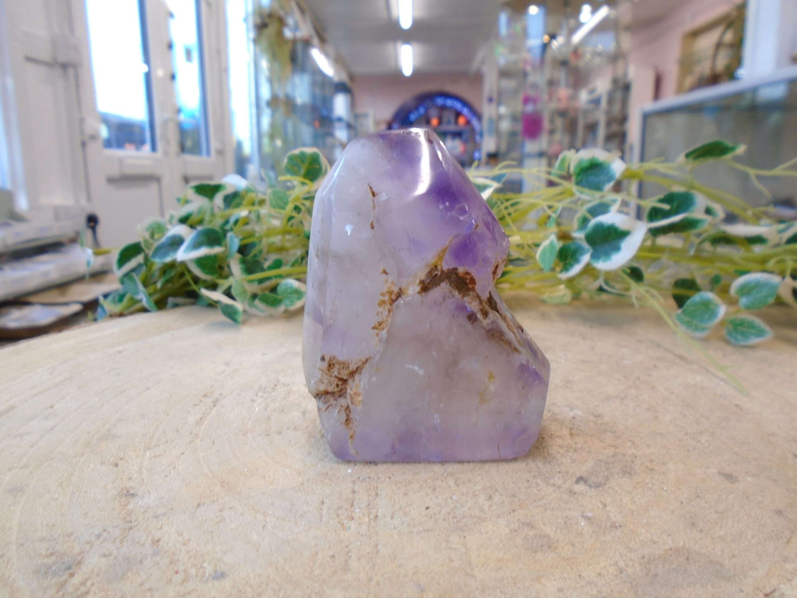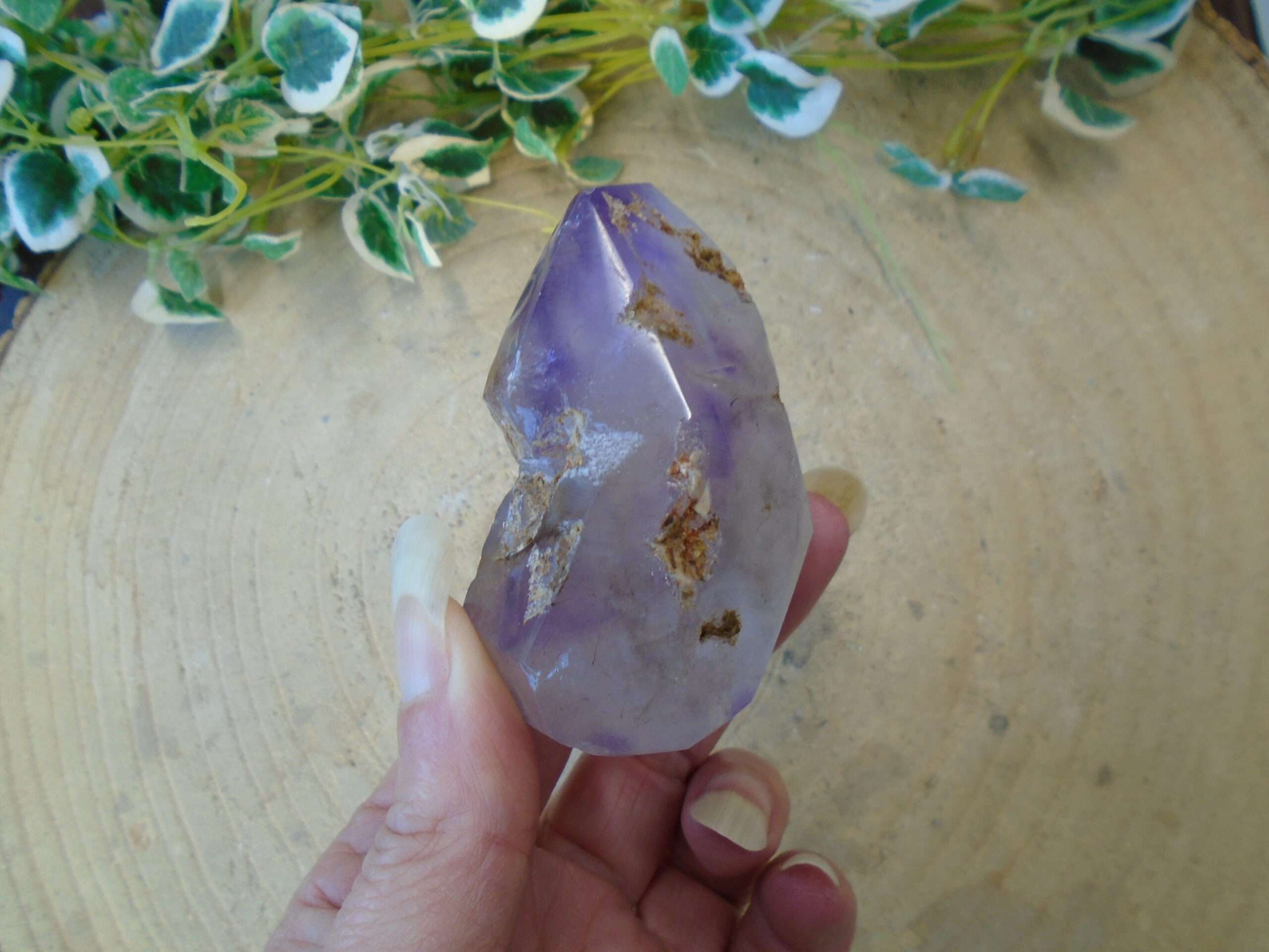 Amethyst Elestial stand up.  This stands approx 6cm tall x 5cm x 3cm and weighs 127g