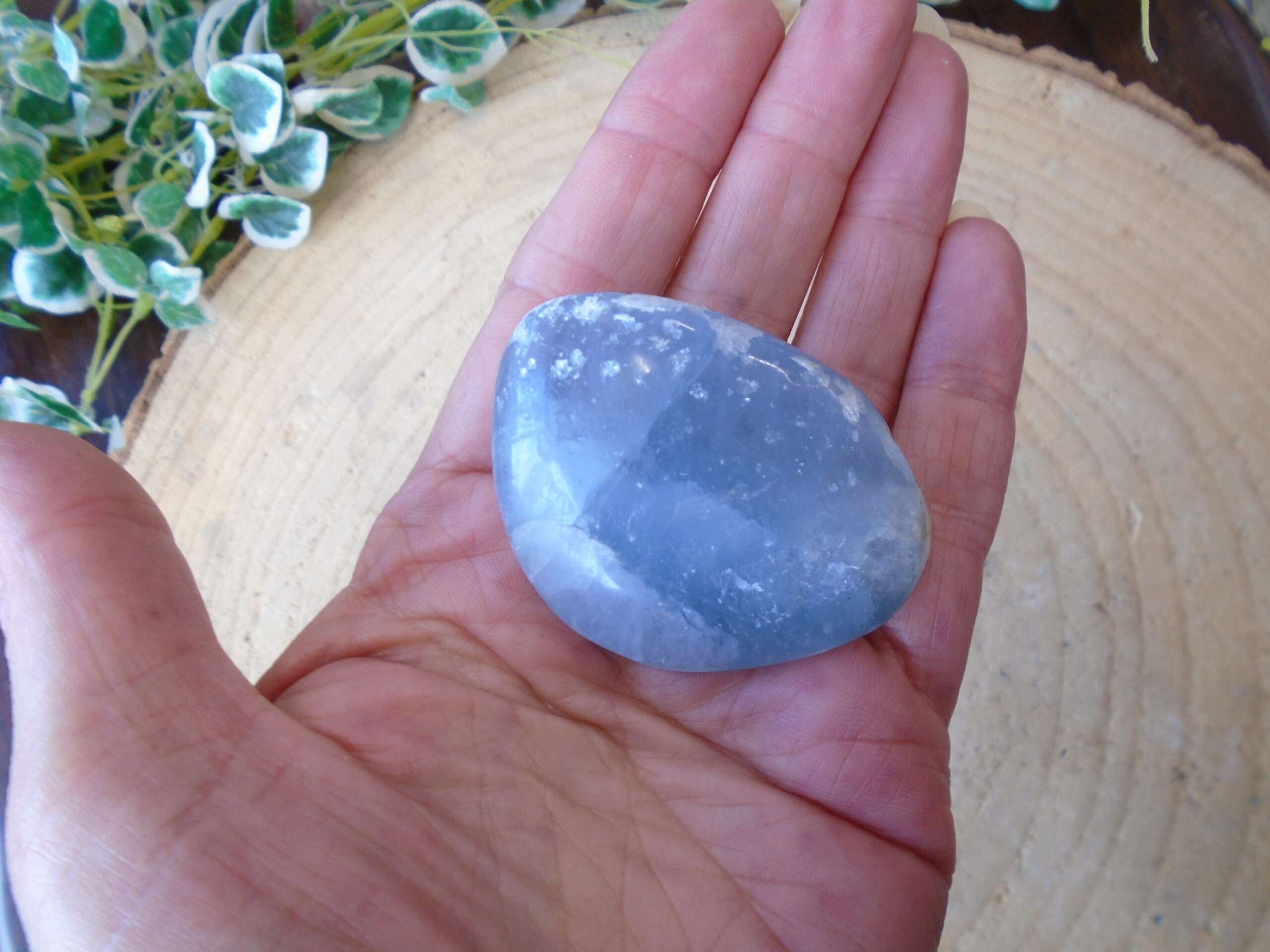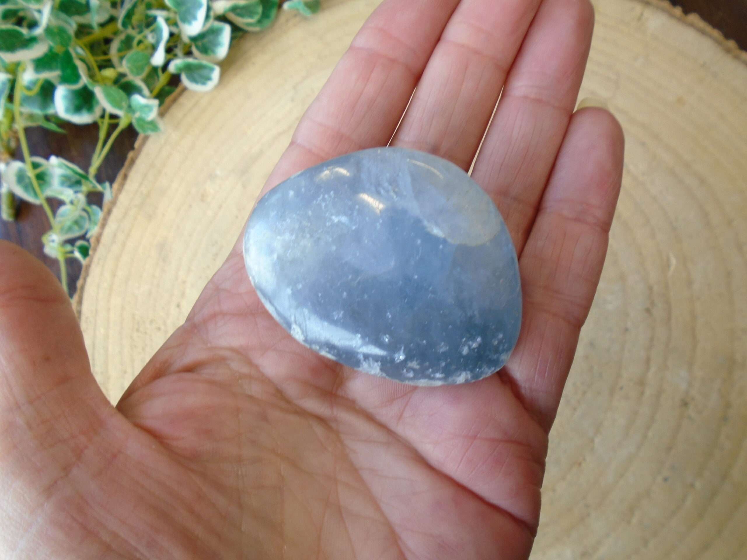 Unusual polished Celestite pebble. This measures approx 5cm x 4cm and weighs 96g