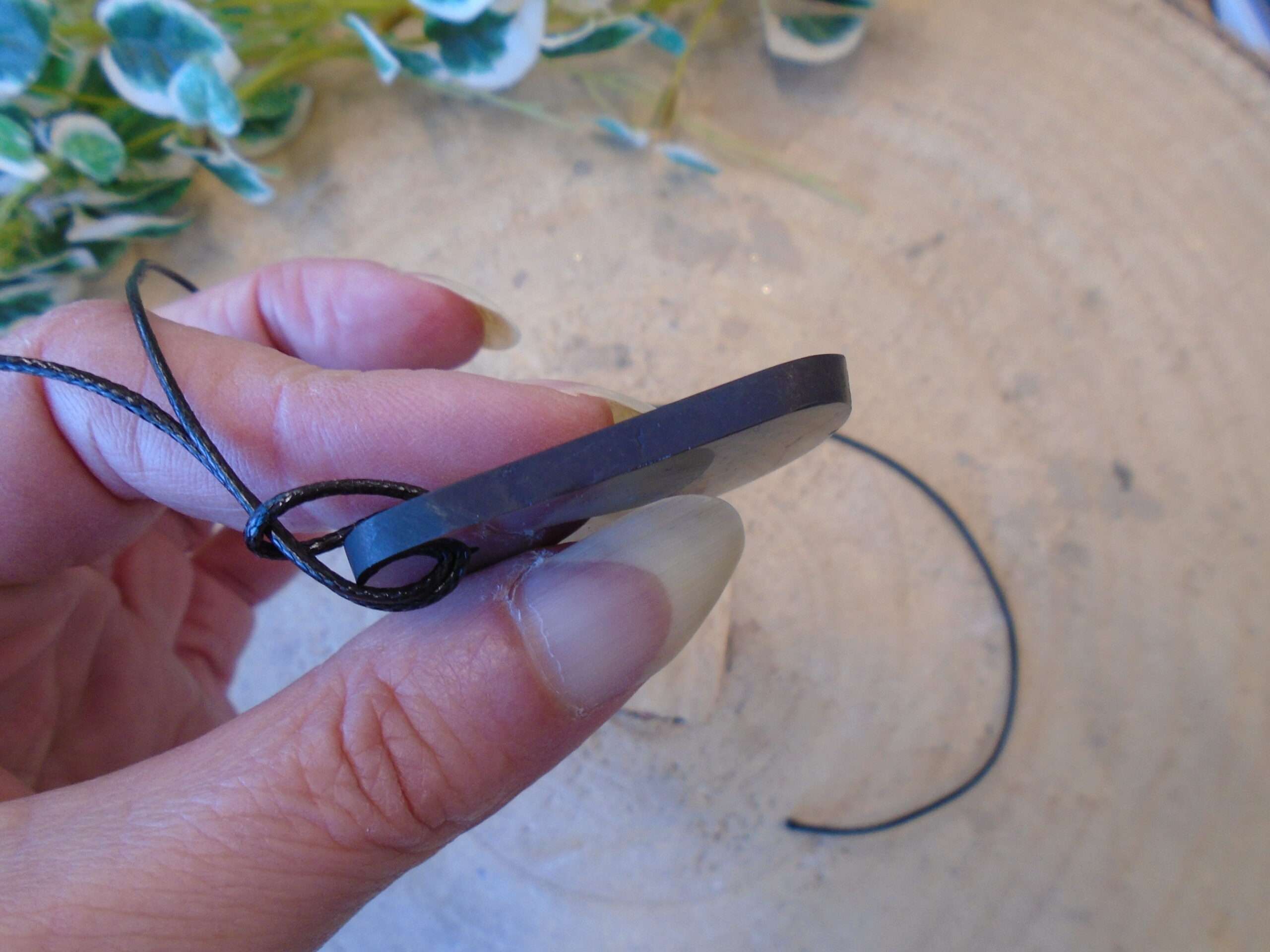 Polished Shungite irregular shaped pendant. This measures approx 4.5cm x 3cm x 4mm and weighs 10g
